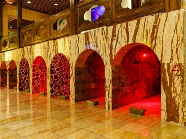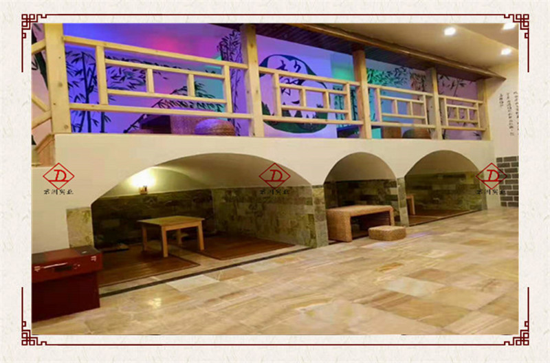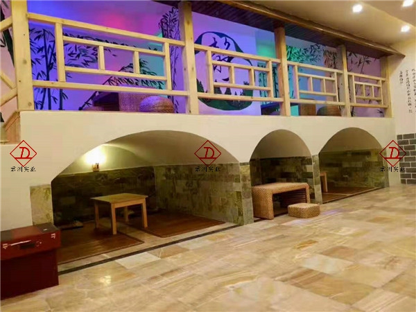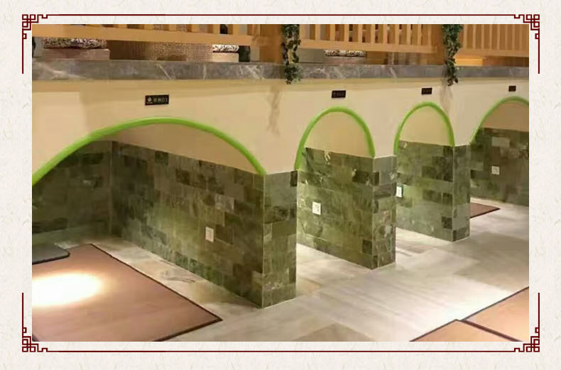 窯洞汗蒸房,較常規(guī)的汗蒸房更為新奇,外表為窯洞造型,內(nèi)部采用功能性納米保健玉石。因?yàn)楦G洞的造型有一部分為了更貼近于原始窯洞造型,所以較一般的汗蒸房更加新穎,功能更加好,返璞歸真,還原原始社會(huì)勞動(dòng)人民通過(guò)窯洞達(dá)到治病、預(yù)防、休閑養(yǎng)生的功能。